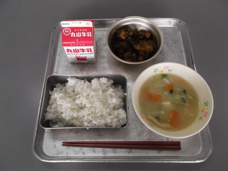 11月12日(木)献立:ごはん 牛乳 さかなのたこやきソースからめ みそしる