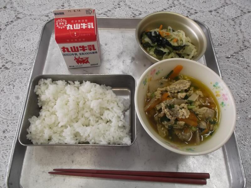 6月15日(月)献立:ごはん 牛乳 すのもの だいずのいそに