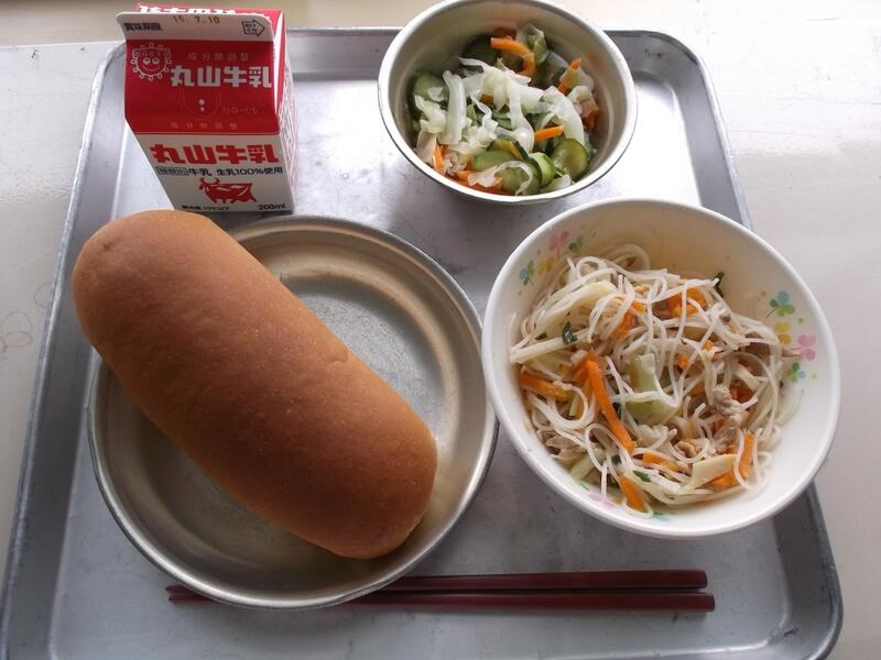 7月3日(金)献立:げんりょうコッペパン 牛乳 フレンチサラダ いためビーフン