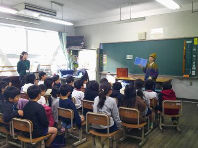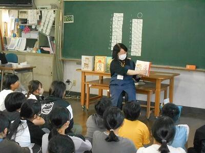 延岡市立図書館の図書館司書のみなさんにお願いして「お話会」を実施しました。11月13日(木)には、4~6年生、14日(金)には、1~3年生で学級ごとに行いました。ちょっと教室を覗くと、いつもにぎやかな教室が、しーんと静まりかえって、司書のみなさんの読み聞かせやブックトークに耳を傾けていました。本のおもしろさがすごく伝わっていたようです。