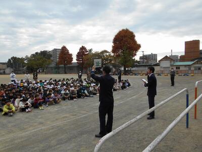これからも定期的に来てくださるとのことで、交通量の多い本校としては、大変助かります。交通事故はあってはなりません。ご家庭でも交通安全については、毎日でも話題にしてください。