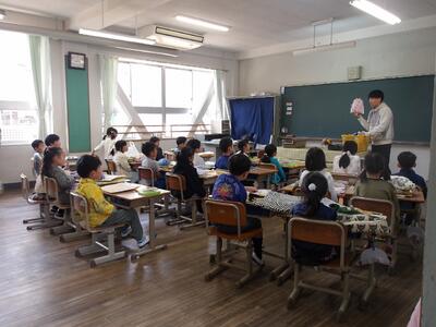 この「よのなか教室」は、よのなかのことを幅広く知り、将来の自分を考えるために様々な仕事で活躍されている方のお話を聞く貴重な時間となっております。他の学年でもいろんなお仕事で活躍されている方のお話を聞く機会を計画しています。