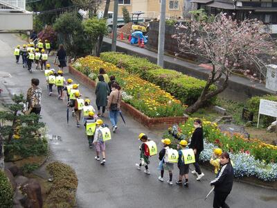 特に「下ばかり見ない」「手をしっかりあげる」「歩道は広がらない」ことの徹底を指導していただきました。学校・家庭・地域みんなで、見守り、指導し続けていきましょう!