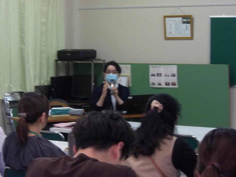 消防署から来ていただいた宮田さん、後藤さんのお二人には、「煙を避けるため横に逃げる」「口を覆う」などのポイントを教えていただいきました。また、職員の動き等についてもアドバイスをいただきました。これからも、自分で考え、臨機応変に対応できるように学習していきたいです。