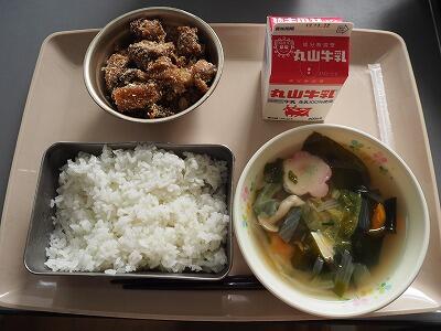 今日は、カラッと揚げられた魚がサクサクおいしい魚の竜田揚げです。魚の献立は子どもたちにも人気があるので、今日の給食を知った子どもたちは、「やった~!魚だ!」とうれしそうにしていました。