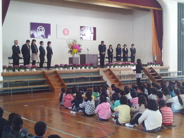 そして、3月30日には離任式を行いました。10名の先生が岡富小学校を卒業されました。新しい学校でもご活躍されることを御祈念いたします。