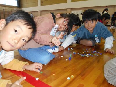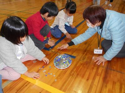 手本を見せてもらいながら、けん玉、メンコ、的当て、ヨーヨー、おはじき、おじゃみ、コマ、あやとり、だるま落としに挑戦。苦戦しながらも、たまにできる喜びが大きいようでした。子ども達が興味を持っている今こそ、家にけん玉やヨーヨー置いてみませんか。ゲームやスマホにはない面白さがあります。きっと夢中になりますよ。社協の皆さん、今回もありがとうございました!