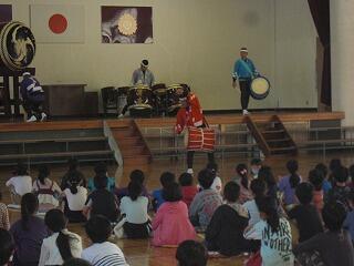 迫力満点の心に響く音色と渾身のバチさばきを、全校児童で堪能しました。