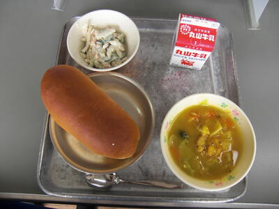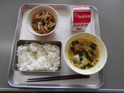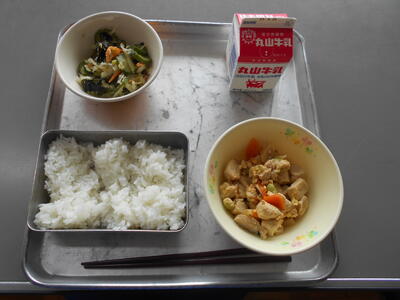 5月18日(木)、今日は、もやしについてのお話です。 細くて長くのびたもやしは、たいした栄養がないように思われがちですが、実は大違い。もやしは、ビタミンB1やB2やC、カルシウムを多く含みます。もやしには、ふつう私たちがもやしと呼んでいるブラックマッペもやし、中華料理によく使われる、ふつうのもやしよりも太い大豆もやし、糸もやしと呼ばれるとても細いアルファルファなどがあります。今日は、小松菜やキャベツと一緒に和え物にしています。残さず食べましょうね。