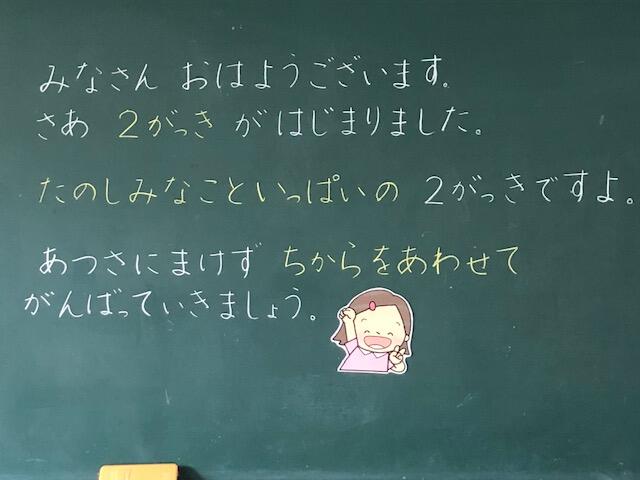 さて、朝、教室の窓開けをしながら、教室をのぞいてみると、子どもたちへの先生方のメッセージが書かれていました。その中の一部になりますが、紹介します。