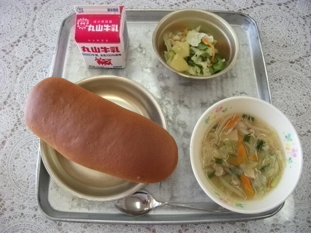 10月3日(土)献立:げんりょうコッペパン 牛乳 ごもくうどん れんこんサラダ