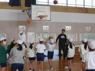 5年生のみんなにバスケットボールの楽しさを味わってもらおうと、アスリート派遣授業を実施しました。