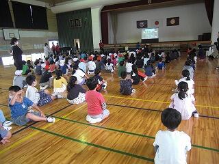 まず、緊急時の避難の約束等を各学級で行い、運動場へ。