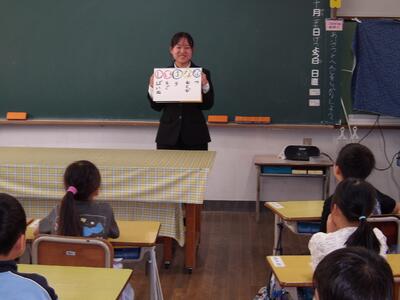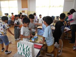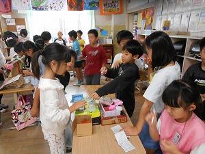 2年生のみんなのアイデアあふれるおもちゃで、1年生のみんながワイワイ楽しく遊んでいました。祭りを用意した2年生もとってもうれしそうです。