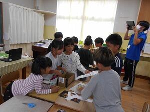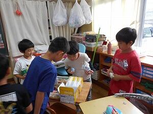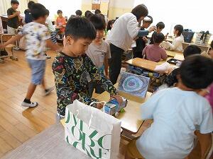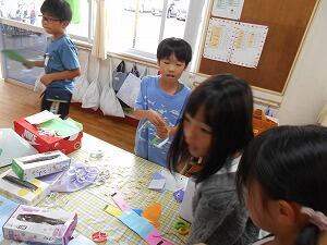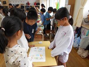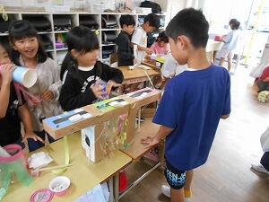 2年生のおもちゃ祭りに、1年生のお友達を招待しました。生活科の時間に2年生のみんなが、紙コップやペットボトル、段ボール箱などを利用して、おもちゃを手作りしました。