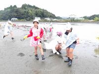 海岸での貝掘りは最初苦戦したものの、段々上手になり、シジミやハマグリを掘り当てる児童もいました。あっという間の1時間で、もっと掘りたいところで潮が満ちてきたため終了。奇跡的に雨が降らず、延岡の海を満喫した一日でした。土々呂漁港、土々呂コミュニティセンター、土々呂幼稚園、のべスタの皆さんにも大変お世話になりました。