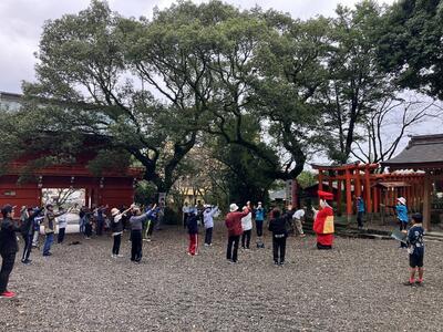 25日(土)に「徐福さん健康長寿ウォークラリー」が行われました。このイベントは、約2200年前に秦の始皇帝が不老長寿の薬を求め、この岡富にもやってきたという伝説にちなみ、毎年行われているウォークラリーです。岡小PTAも協力しています。約1時間かけて今山、山下、駅周辺を散策しながらスタンプをもらい、ゴール地点では抽選会も行われます。岡小児童、保護者も参加しており、みんなでのんびり会話しながら楽しいひとときです。参加賞として500円の商品券等もいただける、健康にもお財布にもお得で、徐福伝説にも触れられるとてもいいイベントです。 来年はぜひ参加してみてください!