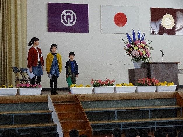 1・3・5年生の代表児童が、1年間頑張ったことや今後の目標について、
