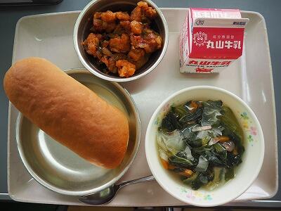 今日は、じゃがいも、しいたけ、玉ねぎ、ごぼう、たくさんの具材のうま味が凝縮された「じゃがいものうま煮」です。ごま和えには、ほうれん草がたくさん入り今日だけでも多くの野菜を食べることができました。4年生教室では、「うま煮がおいしいです!」「ごはんと合います!」とみんなもりもり食べていました。しいたけを苦手とする子も上手に工夫して食べていました。