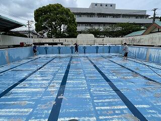 今後、プールに水を入れ、濾過機点検、濾過機の操作方法の研修等を経て、いよいよ、6月28日(予定)に子どもたちの楽しみにしているプール開きとなります。