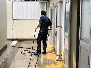 そして、6月10日には、大武町にある「第一環境管理株式会社」の職員2名が来校し、ボランティアで、プールサイドの床や壁などの汚れのひどいところや落ちにくい箇所をきれいにしてくれました。