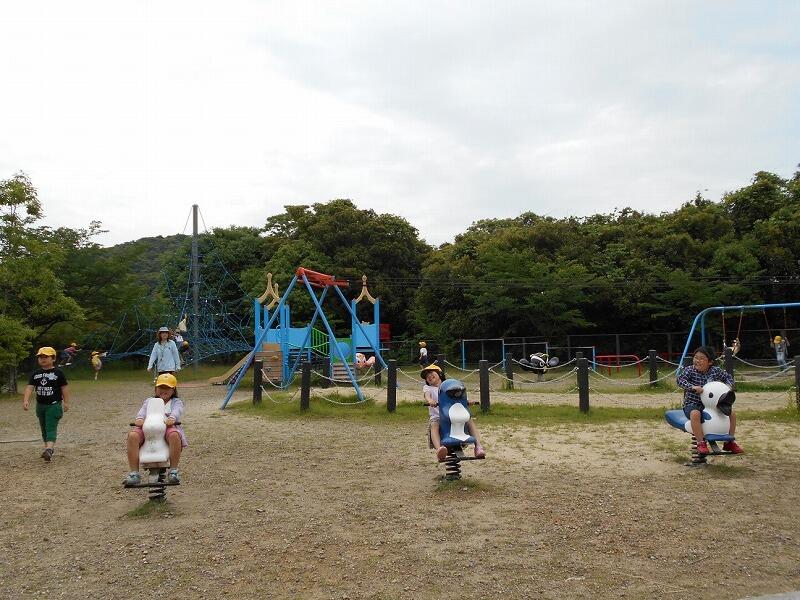 2年生は、門川町「心の杜」へバスでいってきました。大型バス1台、中型バス1台で、心踊らせて公園に到着。下の広場を各クラス順番に使って、話し合っていた遊びで、力いっぱいかけめぐりました。そして、遊具もあり、終始ニコニコな2年生でした。帰りのバスでは、疲れて眠っている子、まだまだ元気があり余っている子。みんな満足できたようです。