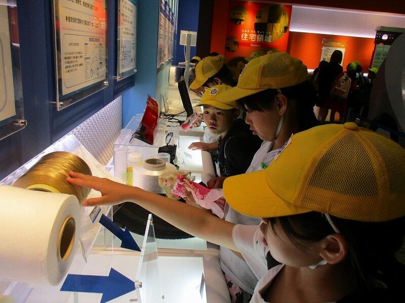 5年生は、春の遠足で旭化成展示場へ行ってきました。社会科で「自動車工業」について学習する5年生にとって、自分たちが生活する延岡に古くからある旭化成について知ることは、とても貴重な体験でした。サランラップ以外にも、たくさんの旭化成製品が自分達の生活を便利にしたり、健康を守ってくれたりしていることに、みんな驚いているようでした。
