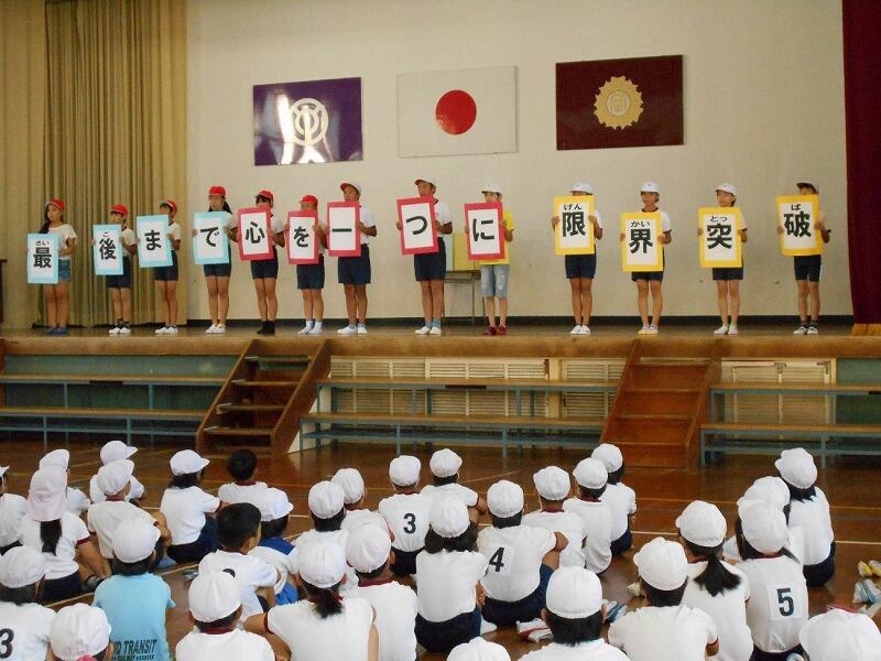 9月5日、運動会の結団式が行われました。今年の運動会のスローガンは、「最後まで 心を一つに 限界突破」です。10月7日の本番に向け、岡小みんなで心を一つにして練習に取り組みます。そして、自分の限界にチャレンジし、最高の運動会にしていきます。たくさんの応援よろしくお願いします。