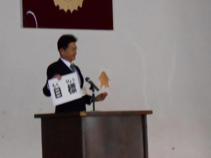 1つ目は、目標決めて頑張ること。2つ目は、やるべきときに集中して取り組むことです。今年は、自分の目標に向かって、猪のように猪突猛進して頑張って欲しいと思います。