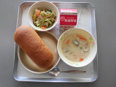 11月7日(火)、献立名(さつまいものシチュー・やさいのあまずあえ)今日は、さつまいもについてのお話です。さつまいもは、夏の初めから秋のはじめに収穫されて、冬から春までは保存されたものが出回ります。保存されたさつまいもがちょうど良い甘さになるのが冬頃で、春までおいしく食べられます。今日はシチューに入れています。さつまいもの甘みが出て、おいしいと思いますよ。