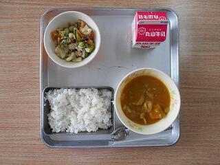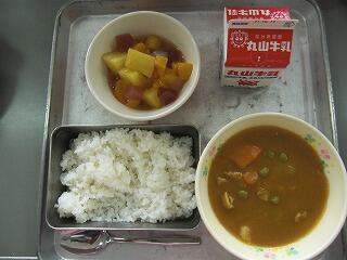 今日の献立は、牛乳、ご飯、カレーライス、フルーツポンチです。