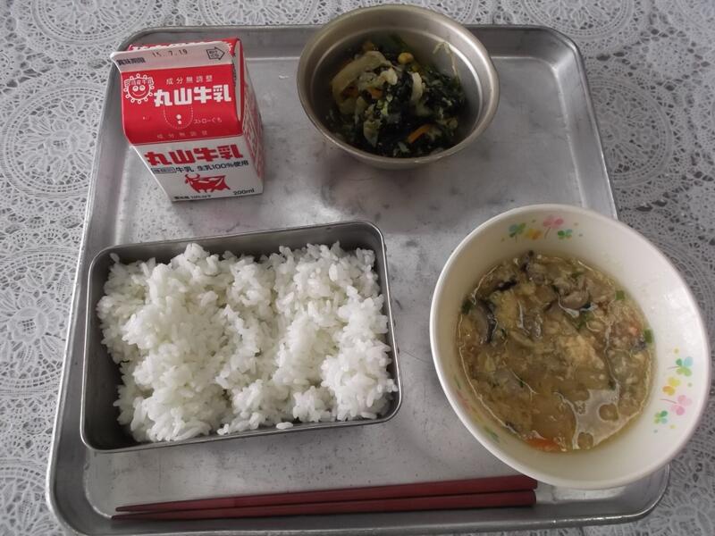 7月6日(月)献立:ごはん 牛乳 はるさめのすのもの ぶたにくとあつあげのにもの