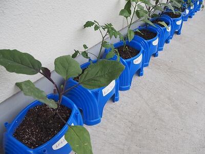 2年生の教室前では、ミニトマトやなす、ピーマンの苗を一人一つずつ植えた植木鉢が並んでいます。毎日水をあげてうれしそうに観察しています。これからどんな風に育っていくのか楽しみですね。
