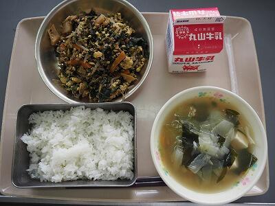 1年生教室を覗いてみると、「豚キムチビビンバがおいしいです!」「辛くないから全部食べられました!」と今日もみんなにこにこ顔で食べていました。