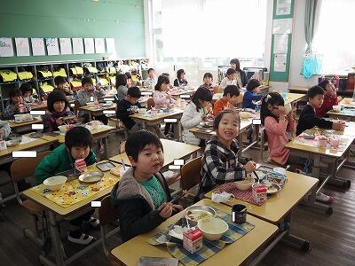 今年最初の給食もみんな好き嫌いせずモリモリ食べていました。