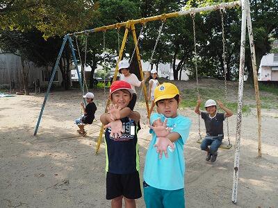 また、登校してくると、朝から元気いっぱい運動場で遊ぶ子どもたちがたくさんいます。すべり台をしたり、ブランコをしたり、野球を楽しんだり、みんな朝から元気です!