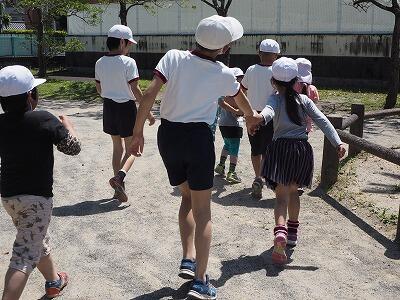 1年生と6年生が仲良く手をつなぎ一緒に遊んでいる姿も微笑ましいですね。