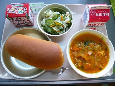 今日は、2学期最後の給食です。12月22日の今日は冬至の日でもあることから、給食でもかぼちゃを使ったメニューにしています。冬至とは、一年中で昼が一番短く、夜が一番長い日とされています。日本では、この冬至の日に「ゆず湯」に入ったり、かぼちゃを食べる習慣があります。かぼちゃは、冬が旬の野菜ではありませんが、風邪の予防に効果的なカロテンなどの栄養素がたくさん入っています。かぼちゃの良さを知っていた昔の人が、季節の節目である冬至の日に病気にならないようにと願い、かぼちゃを食べるようになったそうです。