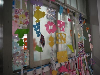 写真は、1年生が折り紙で作った七夕の飾りです。