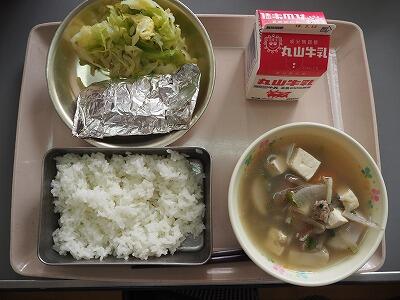 今日は、子どもたちの大好きな「さばのみそホイル焼き」です。甘めのみそ味が子どもたちにも大人気で、「みそがおいしい!ごはんとよく合います!」「この魚ならいくらでも食べられます!」どのクラスでもみんなうれしそうに給食を食べていました。また、かりかり和えには、刻んだたくあんをキャベツと一緒に和えていましたが、たくあんが苦手な子でもたくあんに気付かずに全部食べることができたようでした。