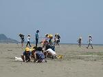午後は、砂浜に移動して、貝殻探しや穴掘りを楽しみました。行き帰りのバスの中でのマナーもよく、楽しい遠足になりました。
