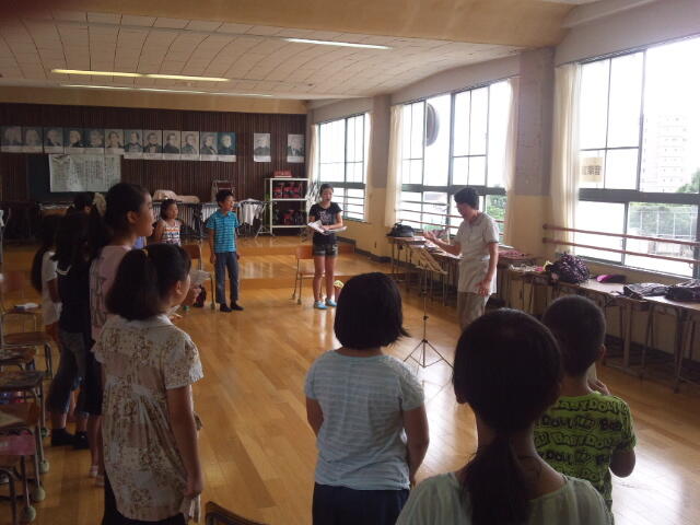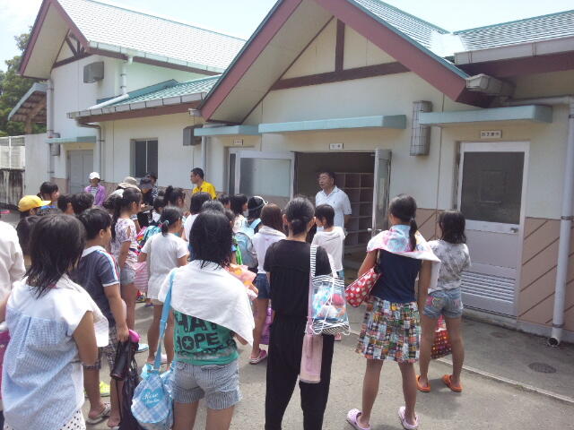 7月23日(木)、24日(金)に4~6年生の希望者を対象に水泳教室を行いました。9時から11時までの2時間、クロールを中心に練習をしました。2日目の記録会ではみんな1日目よりずいぶん記録を伸ばし、なかには70m以上泳いだ児童もいました。閉級式では、校長先生から、「水泳教室でのがんばりを、他のことに生かしてください」とお話がありました。
