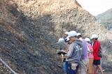 11月5日(木)と6日(金)に、6年生の理科の学習で、岡富町にある地層の見学に行きました。層の厚さや色の違い、層の中にあるものや、よく似た地層が近くに見られないか、班のメンバーと話し合いながら調べました。市役所の方にも協力をいただきながら、見学することができました。