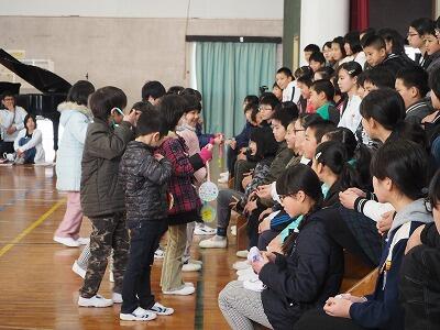 元気いっぱいの歌は、全校のみんなにも元気を与えてくれました。6年生の子どもたちも愛情たっぷりの手作りメダルをもらい、とてもうれしそうでした。