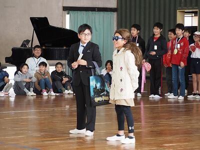 小学校6年間を過ごした岡富小学校での思い出を楽しく面白く表現し、6年生からの感謝の気持ちがたくさん伝わってくる素晴らしい発表でした。会場はたくさんの笑顔と歓声に溢れ、岡富小学校の6年生のスゴさを誰もが感じたものでした。