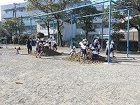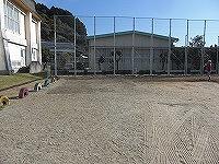 整備途中の土は、登り棒の下などに運びました。1年生が、体育で運動場にいたので、担任の先生に紹介し、楽しんでもらいました。