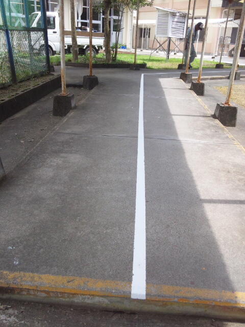7月27日に職員作業を行いました。作業はろう下のセンターラインをペンキで付けていく作業です。児童がろう下の右側を安全に、正しく歩くことができるようにという思いで作業を行いました。