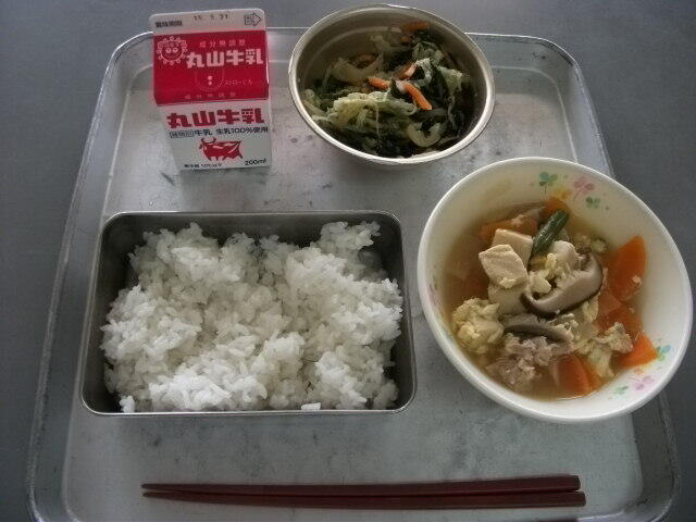 5月14日(木)献立:ご飯 牛乳 こうやどうふのたまごとじ おひたし