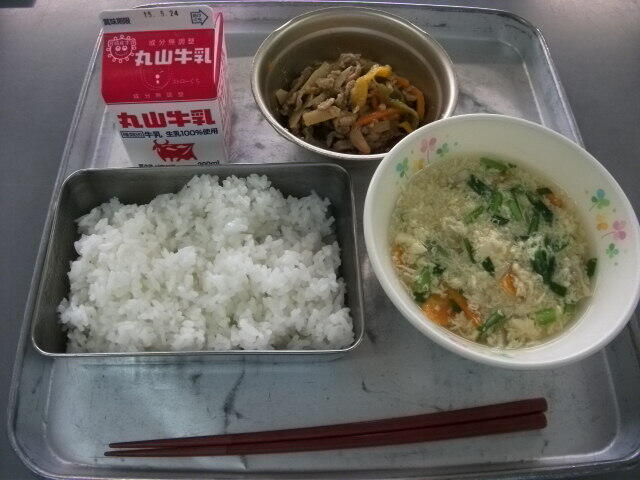 5月18日(月)献立:ご飯 牛乳 チンジャオロース にらたまスープ