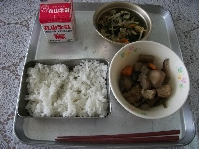 5月20日(水)献立:ご飯 牛乳 いりどり おかかあえ